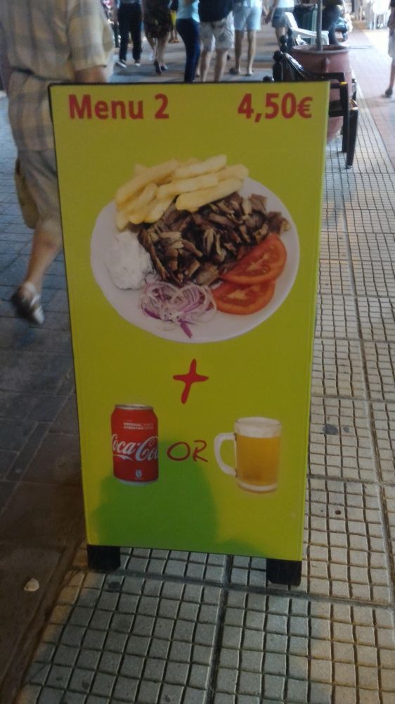 Греки подстроились под вкусы туристов (кто-то лук не любит, у кого-то аллергия на помидоры и т.д.) поэтому в бистро предлагают самостоятельно на выбор скомбинировать начинку по своему усмотрению. Помимо этого, все индигриенты можно поесть вне питы, как обычный набор блюд на одной тарелке, а хлебная пита будет в придачу.