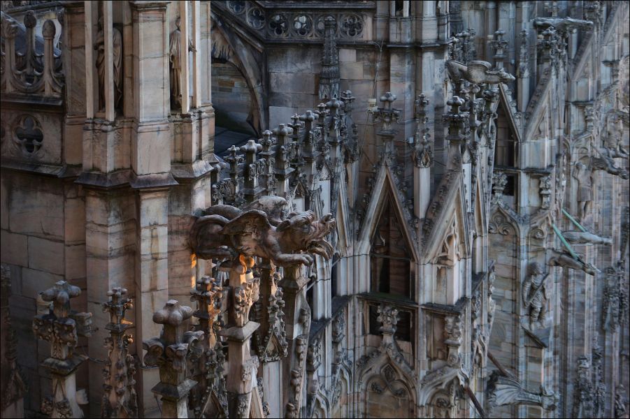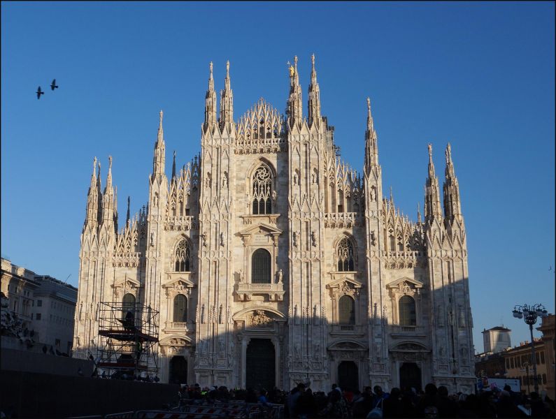 На посещение храма нужно закладывать не менее 4х – 5 часов, если вы хотите и побывать внутри, и подняться на террасы храма. Цены билетов, график работы доступны на официальном сайте . Заранее покупать билеты не нужно – их продажа настолько хорошо организована, что позволяет не думать об этом. Единственное, надо знать место, где находятся кассы, чтобы случайно не встать в другую очередь. Кассы находятся справа от собора, чуть дальше королевского дворца. Мы успевали только осмотреть террасы. Полюбовались игрой теней в белом мраморе, поискали горгулий и встретили закат. Не понравилось, что половина крыши была закрыта на реставрацию, а стоимость билета ох не маленькая (10 евро/чел. на январь 2020).