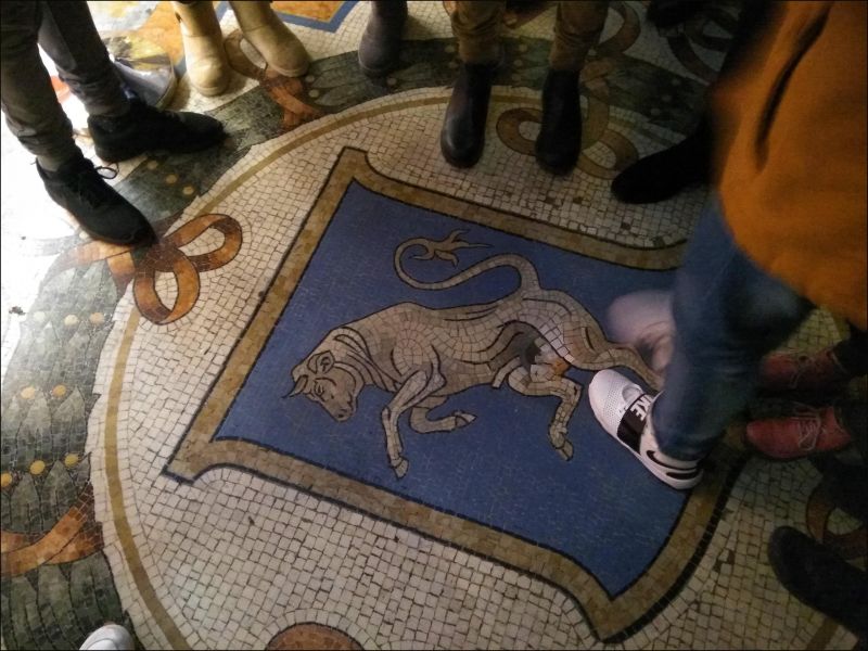 А ещё там круглогодично посетители вертятся на одной ноге прямо в центре пассажа! Это всё потому, что там на полу Туринский бык, исполняющий желания! Сфотографировать бычка может и не удастся – желающих повертеться на его причинном месте предостаточно! Причём сделать это нужно на пятке правой ноги 3 раза! Придумали это актёры, которые подрабатывали здесь во времена открытия галереи. Ритуал на удачу не только сохранился, но и стал очень популярным развлечением у туристов.