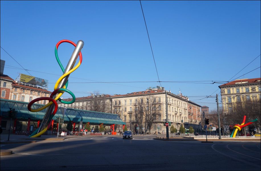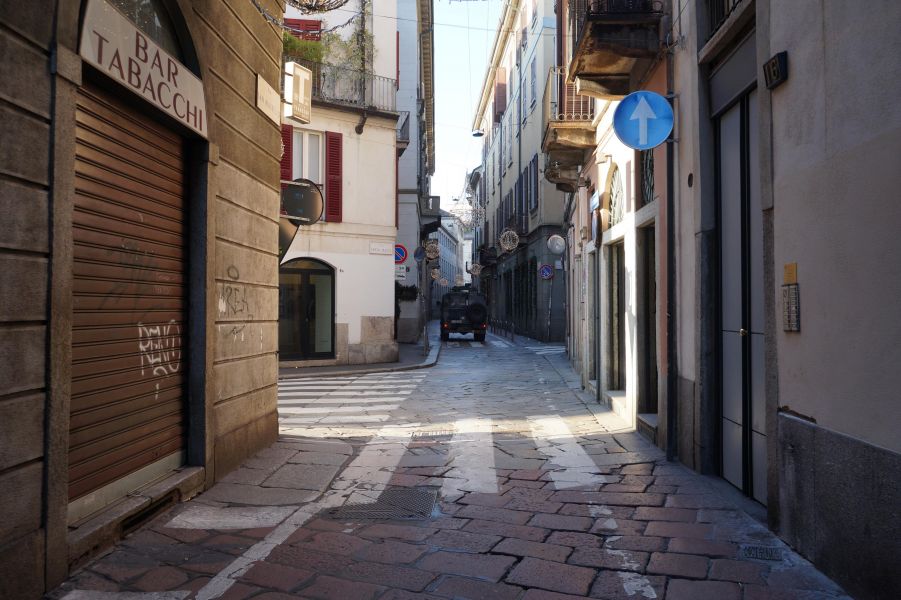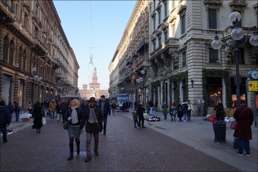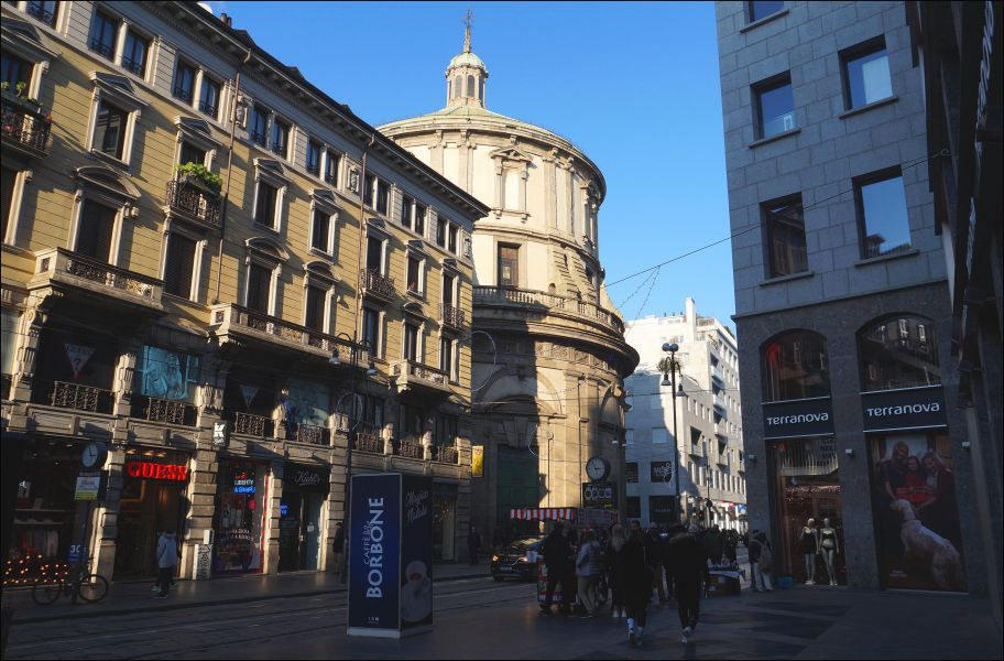 А вот улочка via Torino уже очень оживлённая, на ней кипит жизнь – магазины, пиццерии, трамваи, автобусы, машины.