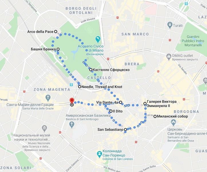 Увидеть это величественное сооружение однозначно стоит, тем более, что замок прекрасно отреставрирован, а вход в его дворы бесплатны! Если располагаете временем, можно зайти и в музеи крепости, вся информация по ценам и графику работыдоступна на сайте . В замке Сфорца найдите комнату с фреской Леонардо да Винчи. И обязательно прогуляйтесь по замковому парку Семпионе!