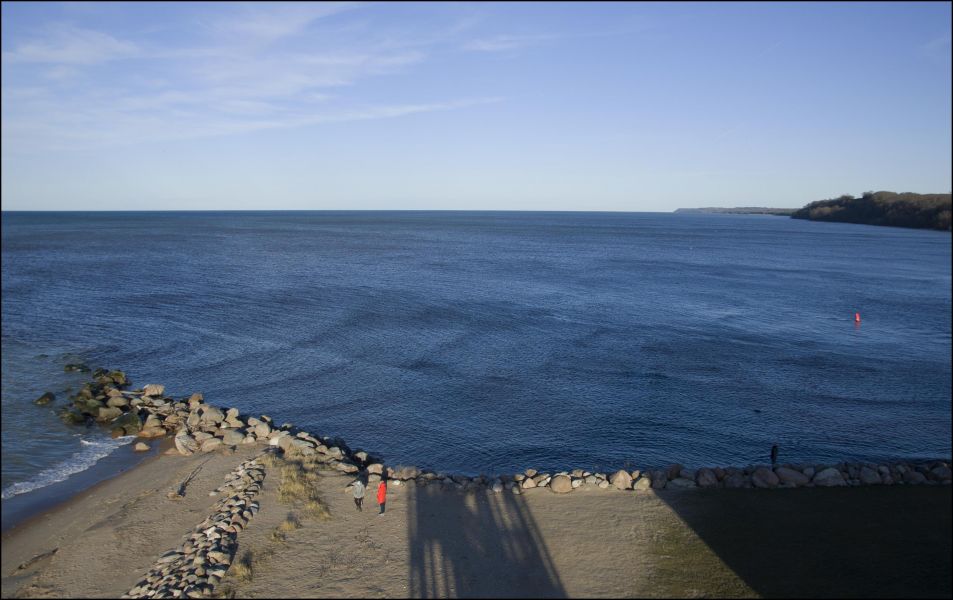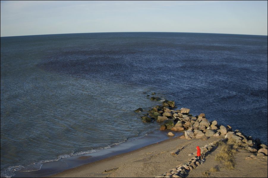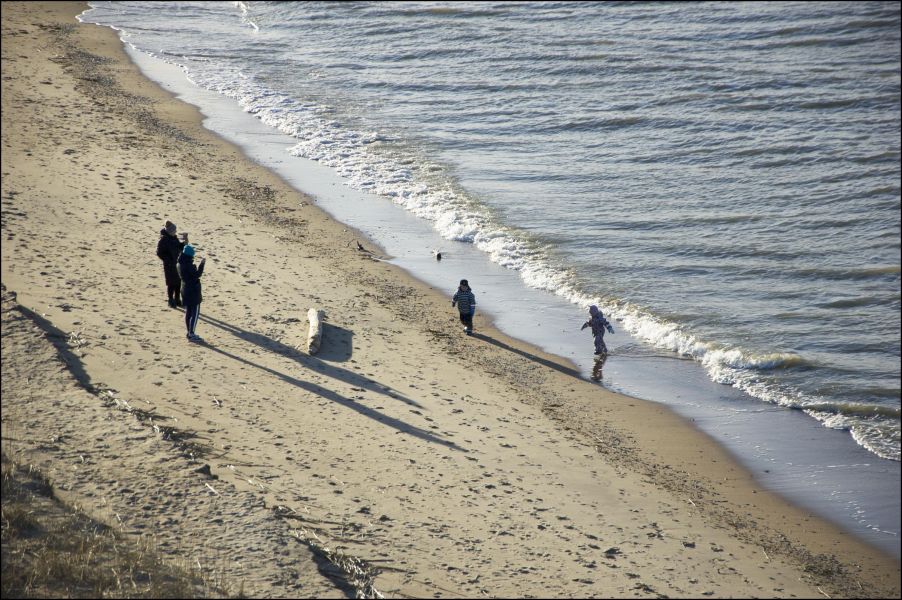 По пляжу гуляли две мамочки с детьми и ещё одно семейство. Пляж достаточно пологий, летом наверняка и купаться можно.