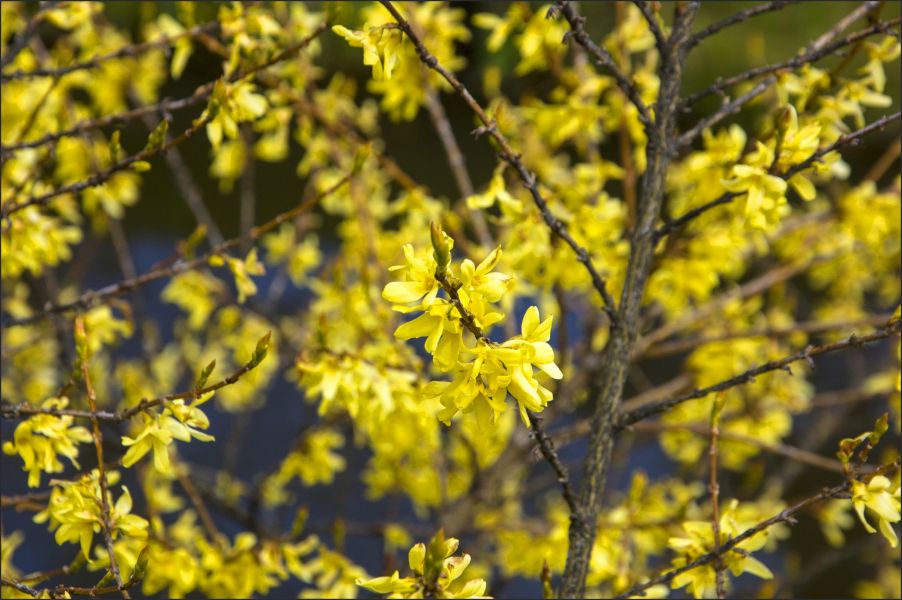 Помимо вишен мы застали цветение форзиции.