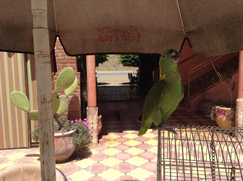 Выехали через перевал Тизи-н-Тичка в Варзазат. Перед тем как сунуться на подъем, пообедали в кафе с попугаем. Я заказала таджин, а в нем был маленький зелененький перчик. И надо же было мне его укусить. Вначале я подшучивала над Виталиком, который всех официантов предупреждал – без специй. И тут на меня сначала напала икота, которую нельзя было ничем остановить, потом сами по себе хлынули слезы, затем стало тяжело дышать. И при этом никаких неприятных вкусовых ощущений – вот это и есть местные специи. рищла в норму и села за руль. Нас ждали горы.