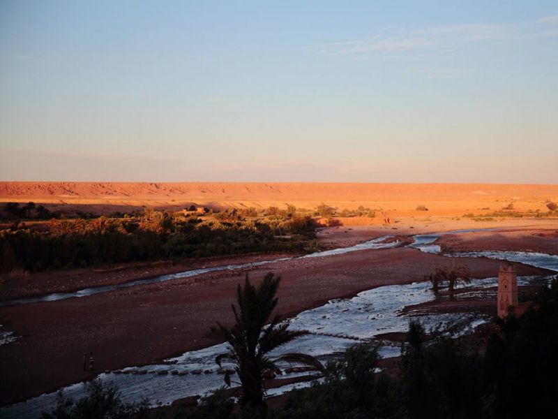 К вечеру после заселения в отель, мы нашли касбу Айт-Бен-Хадду, дорога туда не «айс», а прокатное авто жаль, хотя и свое было бы жаль – дорога грунтовая и все в пыли. На осмотр касбы нужно не менее полдня. У нас не хватило времени, уже темнело, а она оказалась огромных размеров, это же целый город. Пишут, что с вершины ксара видно и Сахару, и заснеженный Атлас. Не бегите мимо этого объекта, осмотрите его, говорят что непременно стоит посетить без спешки.