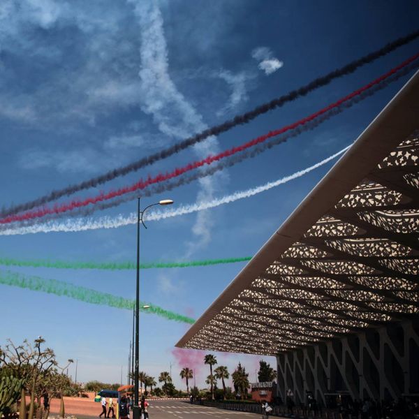 Перед аэропортом самолеты рисовали в небе сердца цветами государственного флага Марокко. Был праздник. Рассмотрели строящееся здание с кружевной крышей, погрелись на солнышке. В зал идти не хотелось, сожаление от расставания с Марокко все же подкралось. Мимо прошла настоящая немецкая овчарка, невероятная красавица работает в аэропорту нюхачом, а пытаются отсюда вывезти и то, что совсем нельзя. Я немного присвистнула, надеясь на умный взгляд прямо в мои глаза , но та даже не повела ухом. Как же моя такса, оставившая меня в ноябре, не похожа на овчарку!