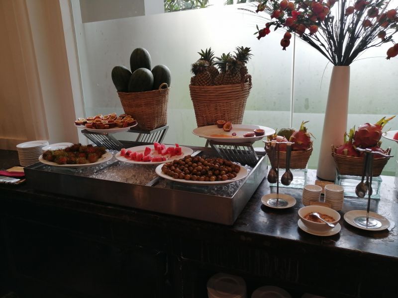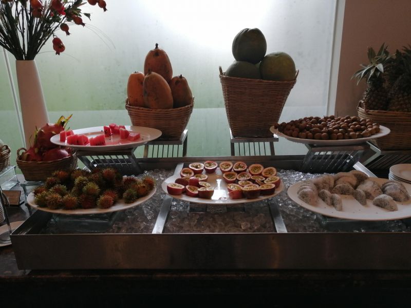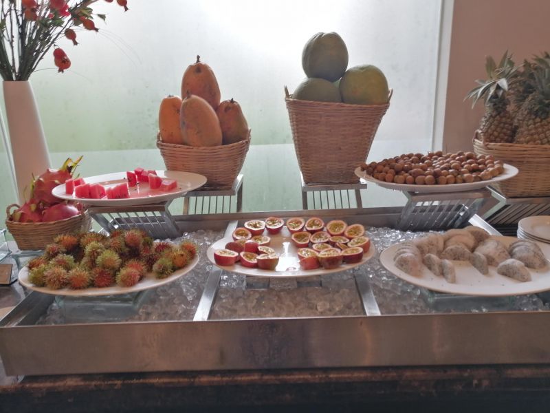 Такой был сегодня ассортимент фруктов в нашем отеле на завтрак. Вчера на ужин, в дополнение к этому, были ананасы ипапайя.