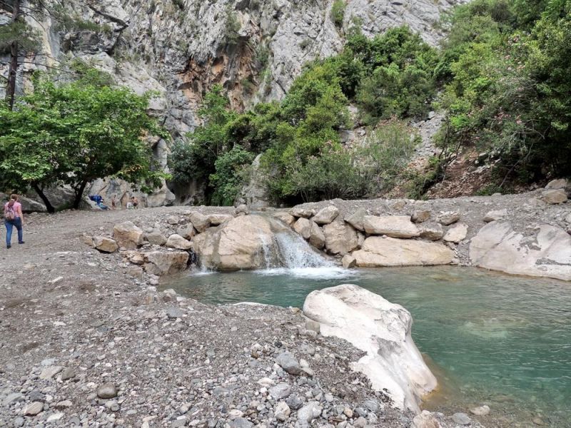 Тут пеший маршрут заканчивается и тем, кто желает продолжить свой путь , по ещё более узкому каньону, предстоит взять в аренду снаряжение для плавания. Без него дальше не пустят. Стоит такая аренда не дорого. В комплект входит гидрокостюм, ботинки, каска и спасательный желет.