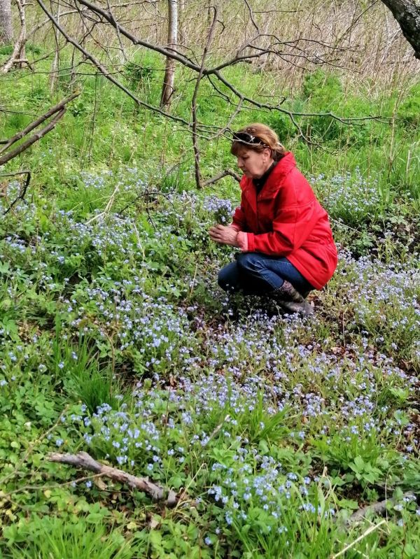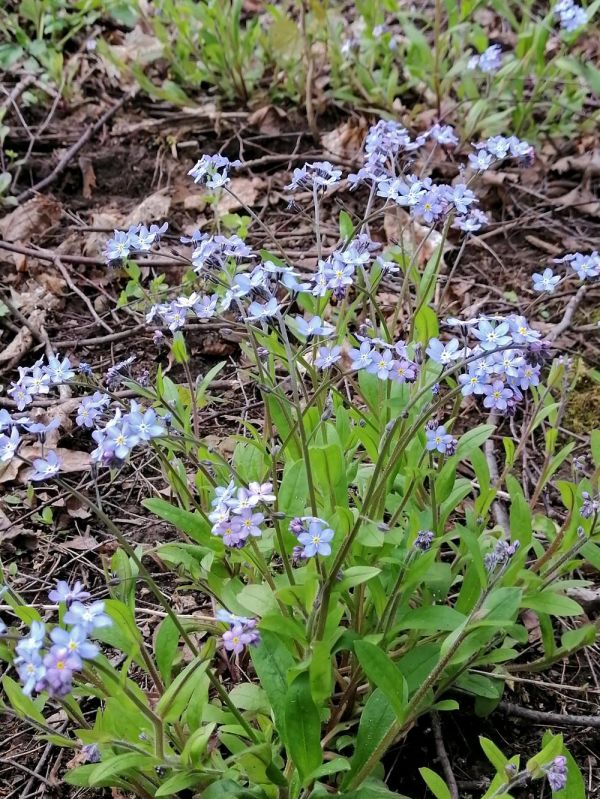 Поездка в лес за полезными растениями ,подходила к концу. Мы ехали по просёлочной дороге. И вдруг, увидели небольшую высотку в пролеске, усеянную пятнами небесно- голубых незабудок. Незабудки необычайно красивые и нежные цветы, о них сложено множество легенд. Решили остановиться и погулять между этими цветами, послушать пение птиц и изучить высотку