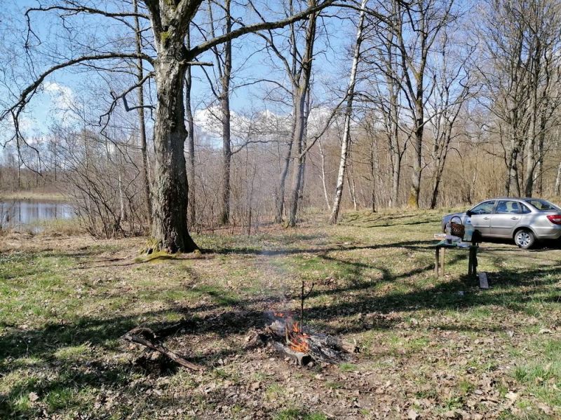 Обычно, на Пасху в этом месте собирается несколько семей и ещё несколько вдоль системы этих озёр. В этот раз никого не было . Была идеальная тишина пронизываемая пением птиц. Я, даже, приёмник не стал включать. Неспеша приготовили и поели традиционные шпикачки и пошли гулять в лес. Там ещё лучше. И вот уже планы на лето по поводу посещения этих мест))) Действительно ,в нынешних условиях начинаешь ценить подобные места. У нас не было запретов на выезд из города. Больше того, было разрешено выезжать на дачи и на одиночную рыбалку, но с лодки на заливах. Парки категорически запрещено посещать, а вот насчёт леса никто ничего не запрещал и, даже, не упоминал. Как обстояло дело в других местах не знаю. В нашем районе нет ни одного случая заражения коронавирусом.)