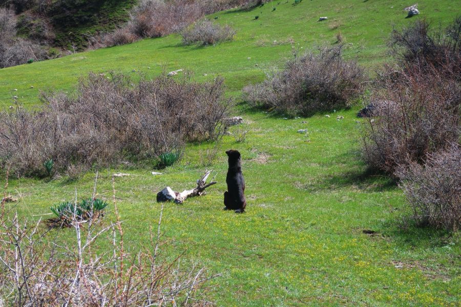 Когда мы стартовали возле кишлака Гиджал, к нам присоединился местный пёс, который прошел за нами весь маршрут. Мы подкармливали его, гладили и тискали. Это не в первый раз, когда местные собаки составляли нам компанию. Однако, обычно у нас было "взаимовыгодное" сотрудничество - мы подкармливали наших лохматых друзей, а взамен они либо охраняли нас от других собак, либо показывали броды через ручьи. В этот же раз, попался какой-то глуповатый и вечно голодный пёс, который постоянно выпрашивал еду. Этого пса мы окрестили... Писюном, т.к. при виде еды у него начиналась неконтролируемая эрекция :-). Видимо ещё молодой...