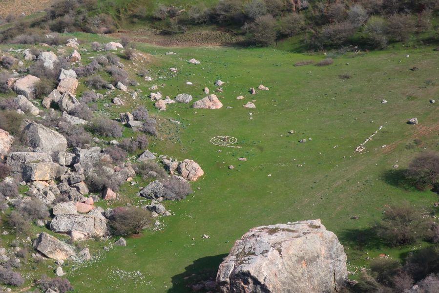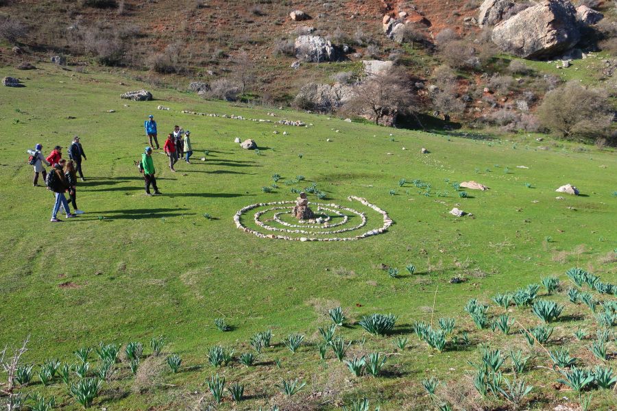 Поднимаясь наверх, мы вышли на одну из полянок и увидели какую-то спираль, выложенную из камней. Гиды рассказали, что её выложил один из их друзей-конкурентов, увлекающийся всякими около-религиозными учениями. Что-то связанное с энергетикой, аурой и тому подобным...