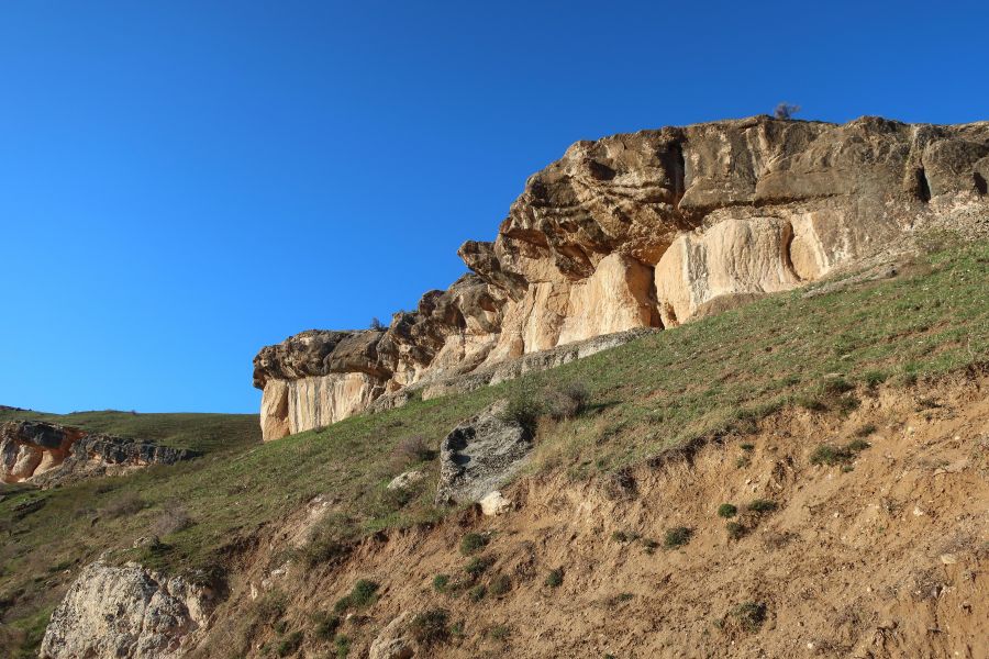В переводе на русский язык Аксаката означает "хромой старец" - этой местный святой, который каким-то чудесным образом создал эту реку. Вообще берега Аксакатасая богаты на археологические и палеонтологические находки. Оно и немудрено - когда-то, в меловой период, десятки миллионов лет тому назад, здесь плескалось море и плавали всякие зубастые "-завры". Время, ветер и вода выточили каньоны и ущелья в местных известняковых отложениях. Вот по ним мы и шли.