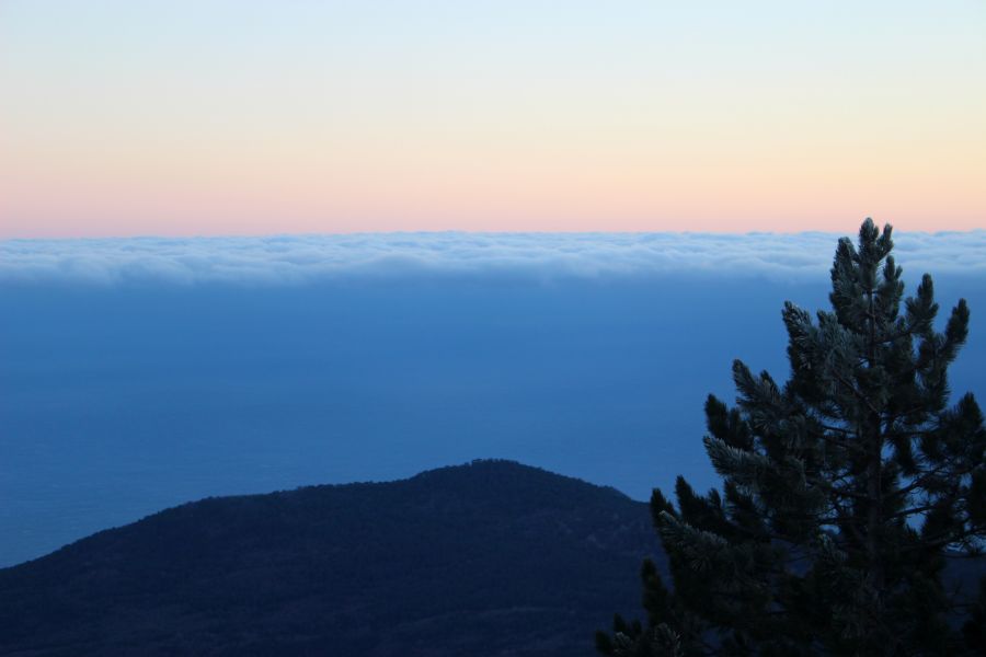 Немного пройдя вдоль плато, в сторону Ай-Петри, мы уже видели яркие звёзды, которых становилось всё больше. Слышали странный вой какого-то животного... глядели по сторонам в поисках сосен, на которые, в случае чего, можно было бы взобраться!:-)) Ускорились, не выпуская из рук трекинговые палки. Благо, странные звуки стали удаляться от нас и мы успокоились. Шли долго, светя фонариками, и, наконец, дошли до ближайших огней кафе и гостиницы. Попили в кафе горячего чая, перекусили и отправились в полной темноте пешком по автомобильной дороге на спуск!