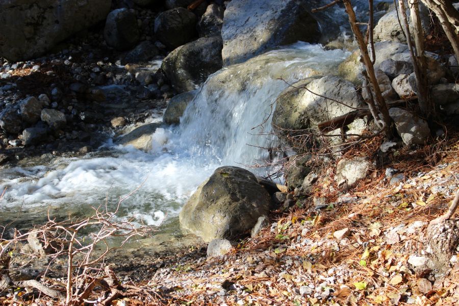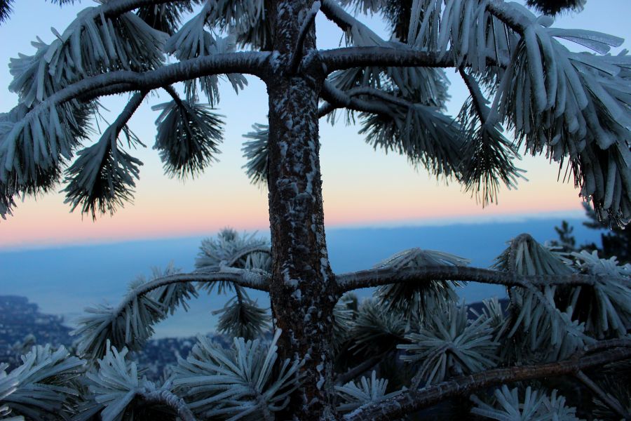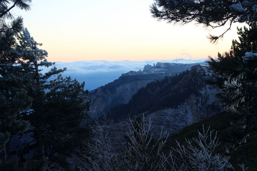 Четвёртая часть подъёма была сложна тем, что тропа была узкая, обрывистая и усыпана скользкими сухими замёрзшими листьями; кое-где на земле лежал снежок, на деревьях висели замёрзшие капли воды. Казалось, что так тяжело и будто бы уже не за чем всё это!..(