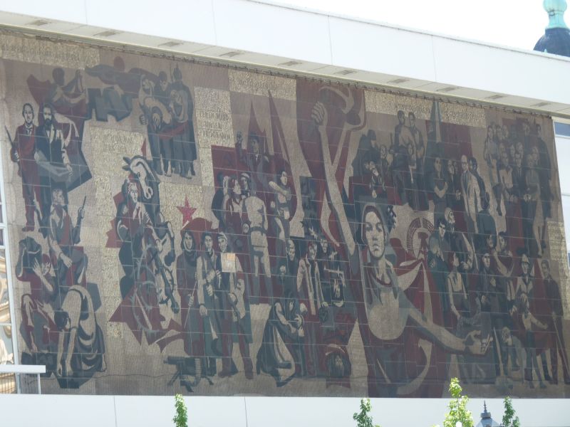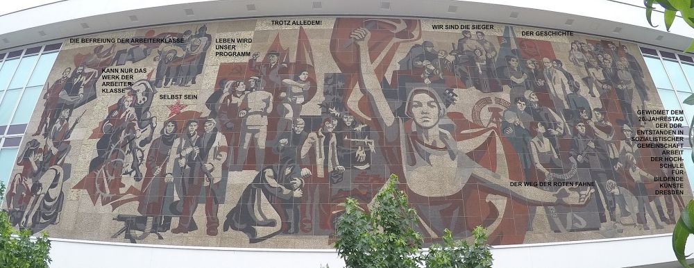 Дрезденский Дворец культуры стоит почти посредине между старым и новым рынками, недалеко от Фрауенкирхе. Пройти мимо и не заметить – трудно. В первую очередь бросается в глаза панно на стене. В наше время, когда символы и признаки социализма старательно уничтожаются, сносятся и подчищаются, панно «Путь красного флага» остаётся в своём первозданном виде.