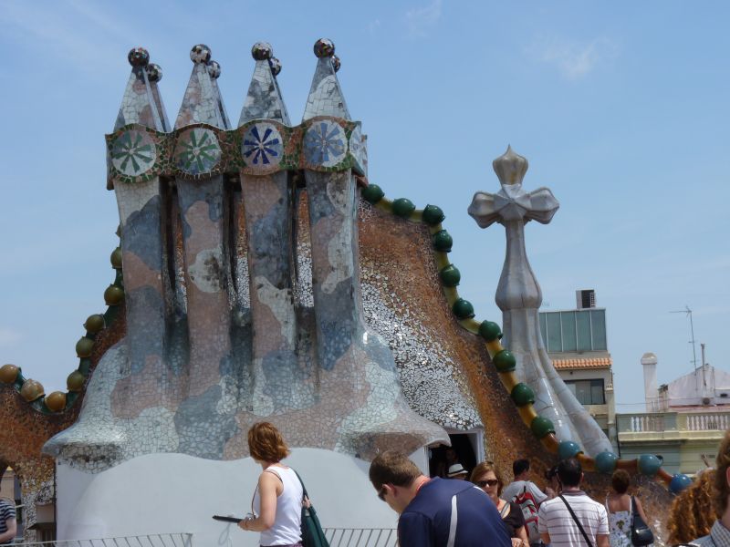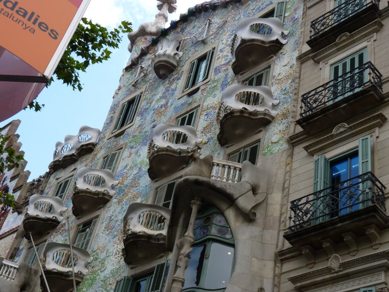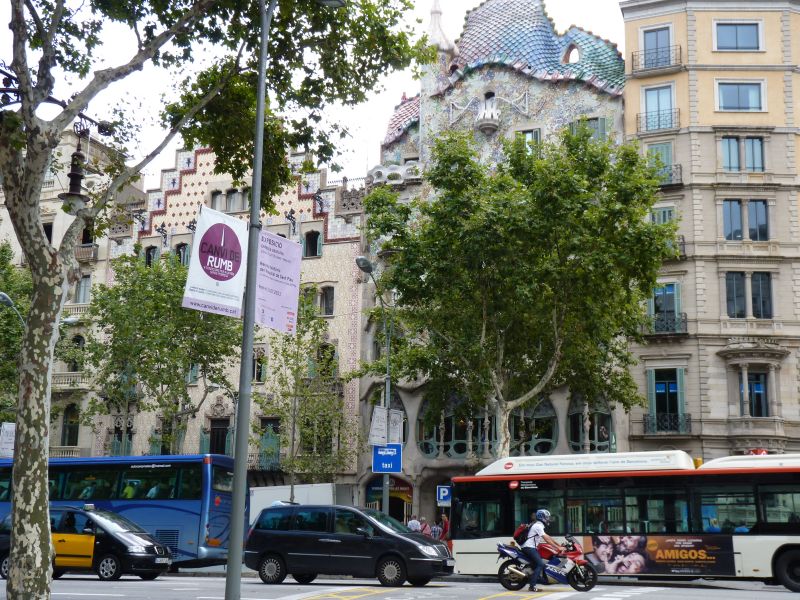 Наша пешеходная прогулка закончена, можно покурить и оправиться, т.е. посидеть в кафе, отдохнуть или бежать в отель на ужин, или спешить на последнюю электричку из Барселоны. А если у вас есть время, то походите вокруг Дома Бальо. Потому что квартал, где стоит дом, получил название «la Manzana dе lа Discordia». Это игра слов, означающая «Квартал Раздора» или «Яблоко раздора». Всё дело в том, что примерно в то же время реконструировались соседние дома. И, конечно, между архитекторами развернулось «соцсоревнование», пардон, соперничество. Но, это стоит посмотреть.
