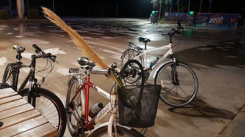 Наши веломоторы. У Мустафы было два велика. Третий для Ромы взяли в 500м от дома. Здесь с этим проблем нет.
