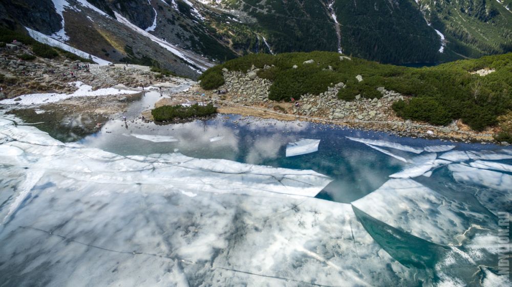 Мы в принципе оказались в этих горах впервые и уж тем более впервые оказались в польских горах. Кстати, многие даже не догадываются, что в Польше они есть. В общем, Морское Око стало бомбой. Мы провели здесь целый день с раннего утра и почти до заката, нагуляв за день 21 километр, обойдя озеро кругом, и даже поднявшись еще выше к Черному озеру на высоту 1598 метров над уровнем моря. И там тоже было очень красиво, чему способствовало таяние льда на поверхности озера, процесс как раз был в самом разгаре. Да, устали в этот день мы как бобики, но впечатления точно получили одни из самых-самых!