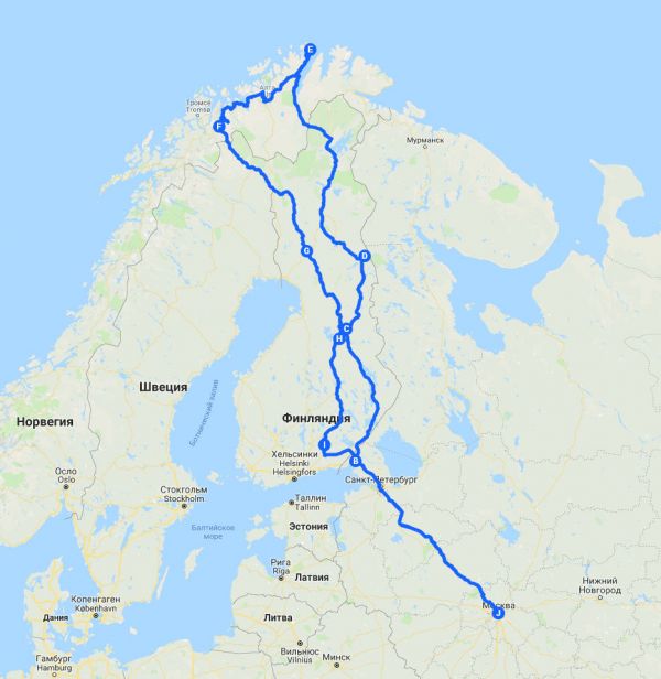 Другая особенность планирования заключалась в том, что если до Нордкапа у меня было все распланировано, то после него никакого плана не было и последние дни у меня происходили в относительно спонтанном режиме. В итоге основными точками маршрута получились следующие.