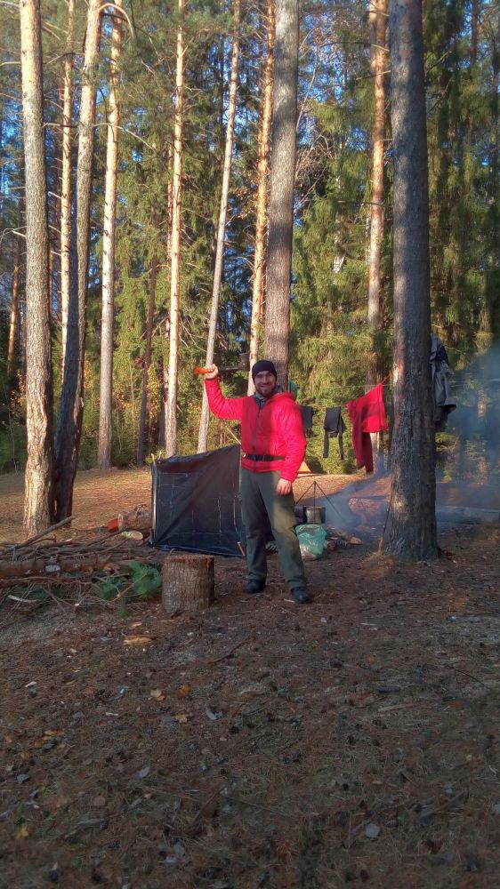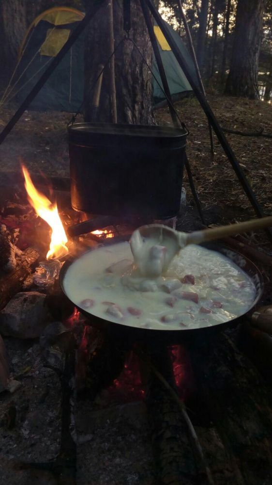 После пары десятков километров пути мы нашли очень живописное место на берегу озера Пужан-Ер. Пока часть ребят ставили палатки, наш шеф-повар разводил костер и готовил вкуснейшее блюдо – баварский картофельно-сырный суп с купатами. После такого ужина вы влюбитесь в пешие походы! Особенно, если с вами будет шеф-повар.