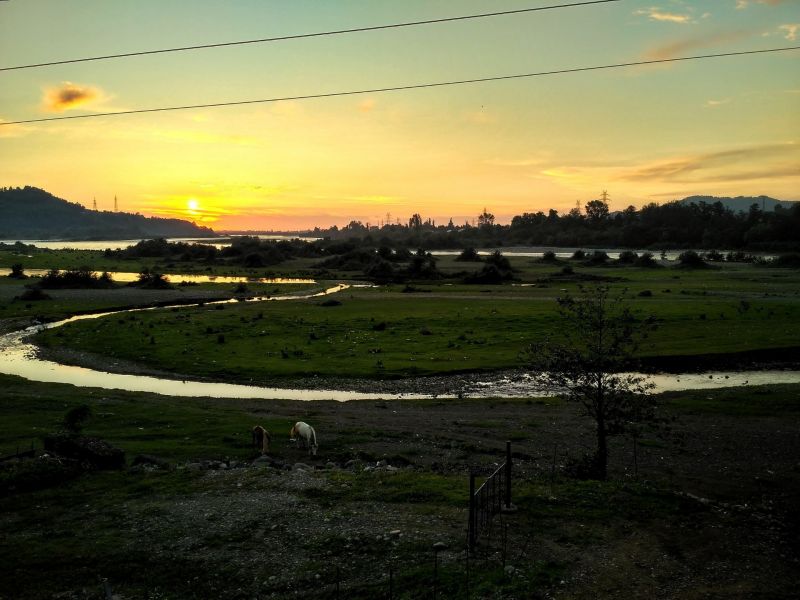 Сарпи - это курортный посёлок, который находится на границе двух стран. Примечателен он тем, что здесь есть небольшая уютная церковь Андрея Первозванного и памятник с водопадом, посвященный ему же. Ну и сам пляж конечно! Сарпи находится до реки Чорохи, которая несёт грязь в Батуми течением из Турции, именно поэтому море здесь кристально чистое! Да и вообще здесь красиво! Спереди скалы, со стороны Турции горы, белая небольшая галька (для любителей камней), вода прозрачная и голубая! Единственный минус, что рядом трасса. Мы были ещё не в сезон, по этому машин мало и нас это не смущало, но думаю в жаркие дни тут очередь из транспорта на переезд в Турцию стоит постоянно!