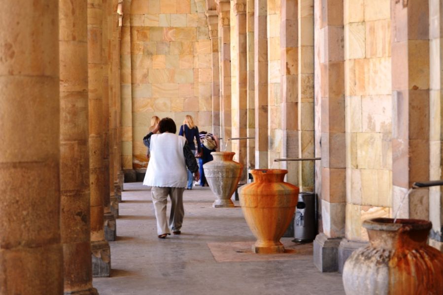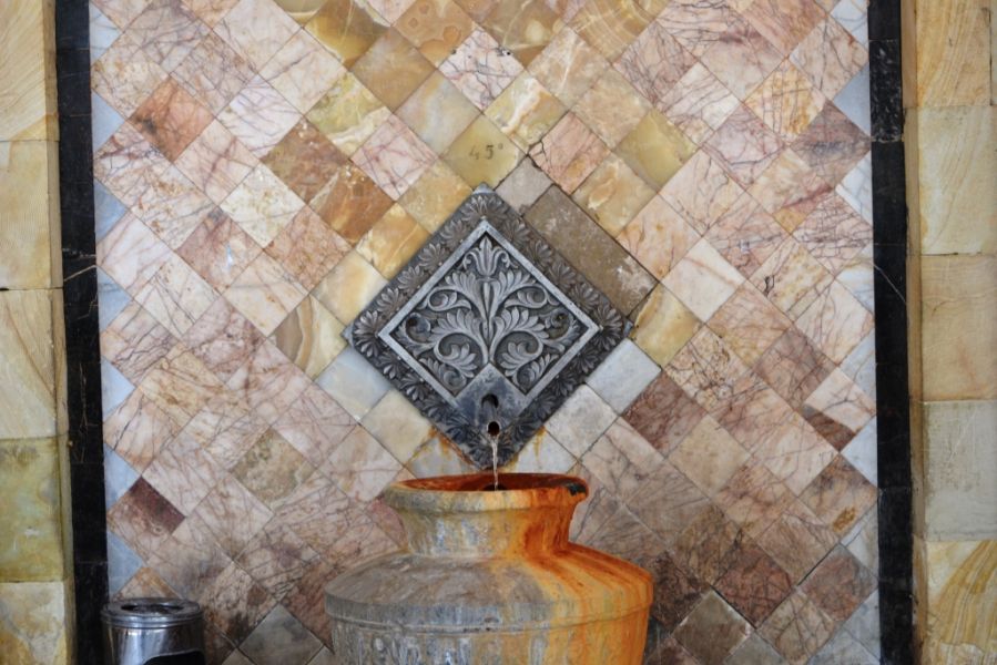 В галерее, в огромные кувшины непрерывным потоком текла минеральная вода, одного с городком названия, с различной температурой от 35 до 58 градусов по Цельсию. Водичка оказалась вкусной, но достаточно горячей. Можно было заваривать чай.