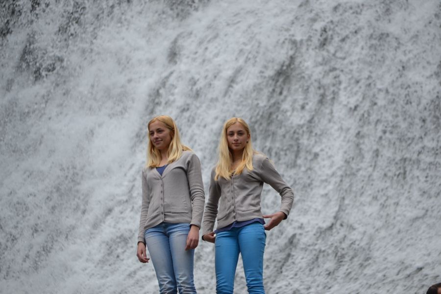 Наши близняшки не преминули запечатлеть себя на его фоне.
