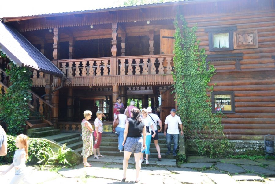 Строила домики гуцульская семья (отец и три сына) два года. Вокруг располагались плантации местного чайсовхоза.