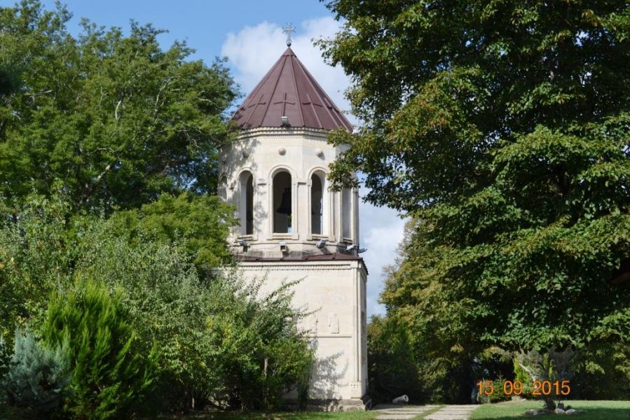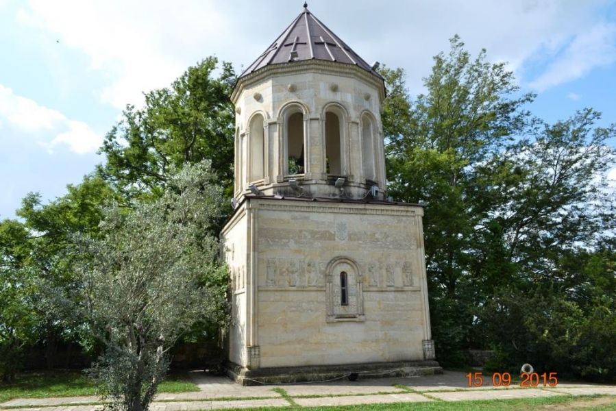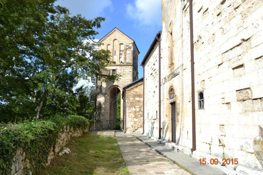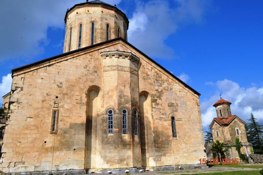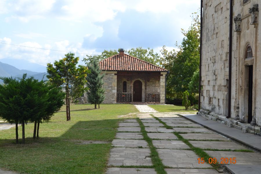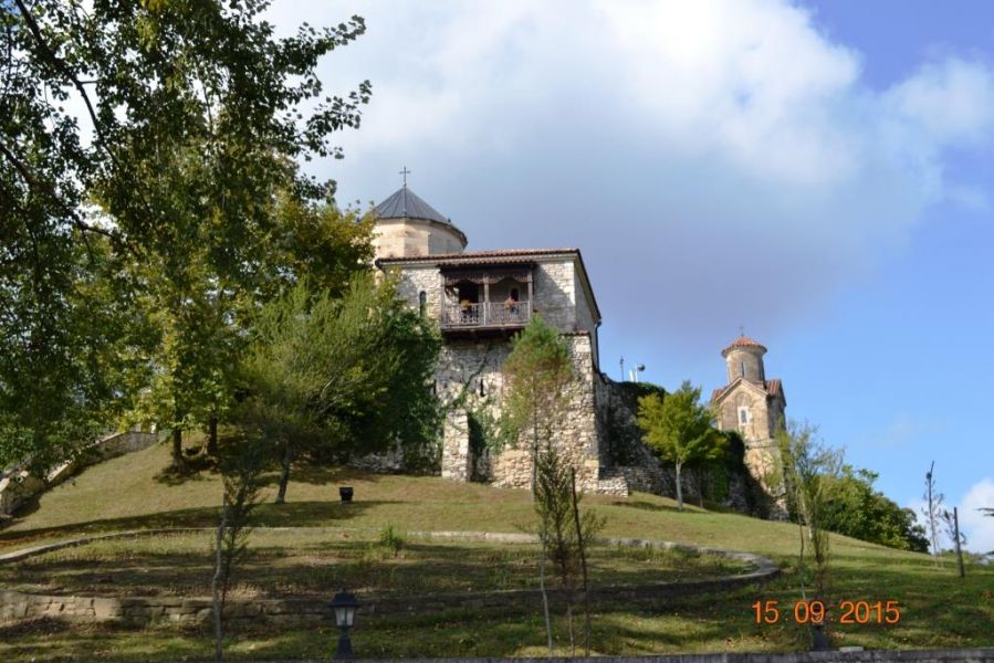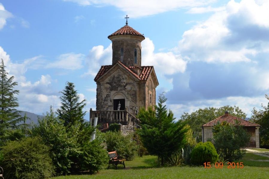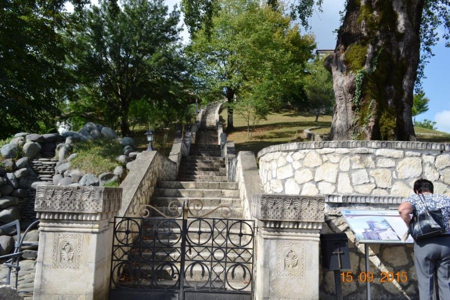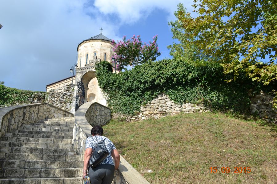К монастырю ведет довольно крутая лестница. Уже на входе в комплекс, мы столкнулись с молодой семьей москвичей, которые, также как и мы, совершали самостоятельное знакомство с Мегрелией. К вечеру того же дня мы опять встретились с ними в Кутаиси. Мир тесен.