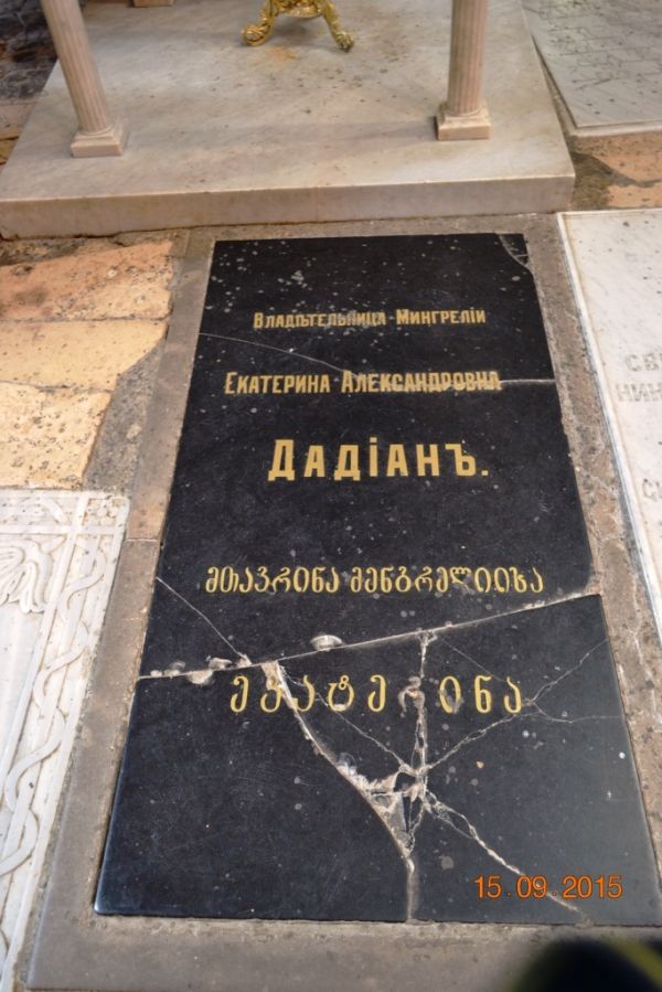 В начале XVIII века в соборе стали хоронить членов семьи княжеского рода Дадиани-Чиковани. На полу собора мы ходили по могильным плитам, среди которых выделяется черная плита на могиле княгини Екатерины Александровны.