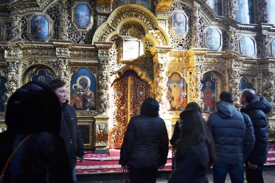 Резким контрастом с внешней строгостью форм собора выступает роскошный пятиярусный, деревянный резной иконостас с позолотой. Он настолько великолепен, что всяк входящий застывает в оцепенении от увиденного.
