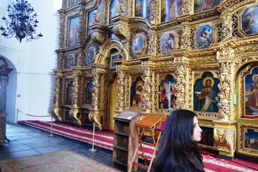 Рядом с храмом находится шатровая колокольня, на верхнюю площадку которой мы конечно забрались и осмотрели собор и окрестности.