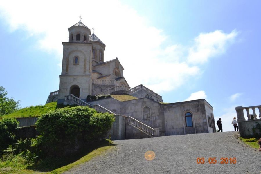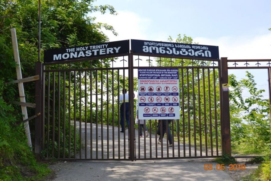 На майские праздники 2016 мы, в очередной раз, остановились на пару дней в Батуми. Заехали на местный рынок, чтобы купить клубники: она там очень вкусная. Супруга с детьми отправились за покупками, а я остался около машины. и мои глаза опять увидели храм на горе. Я решил, что в этот раз мы обязательно к нему доберемся и осмотрим. Охранник рынка, с помощью рук вычертил в воздухе примерный путь к намеченной мной цели и заметил, что церковь находится при женском монастыре Святой Троицы и носит тоже название. Мои попутчики вернулись с коробками, полными клубники, со вкусным сильным ароматом. Планировали довезти ее домой, но не удержались и последние ягоды ушли в наши организмы перед Тбилиси.