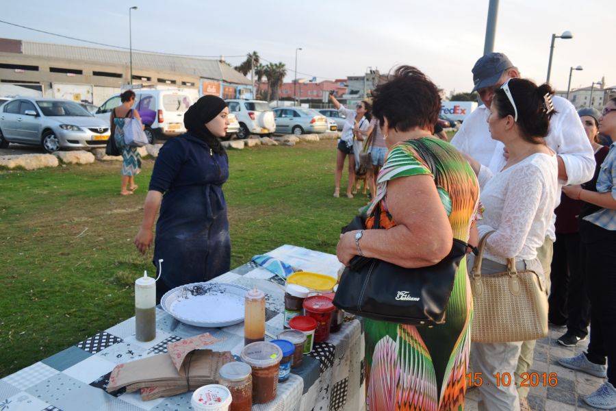 На вытоптанном газоне, вся в черном арабская женщина потчевала прохожих свежеиспекаемыми блинами, с начинкой и без. Ее напарница (в кадр не попала),сидя на земле с сигаретой в зубах, готовила тесто. Супруга не рискнула попробовать блюдо, изготовленное в антисанитарных условиях. Но другие прохожие на это не обращали внимание и устроили очередь за блинами.