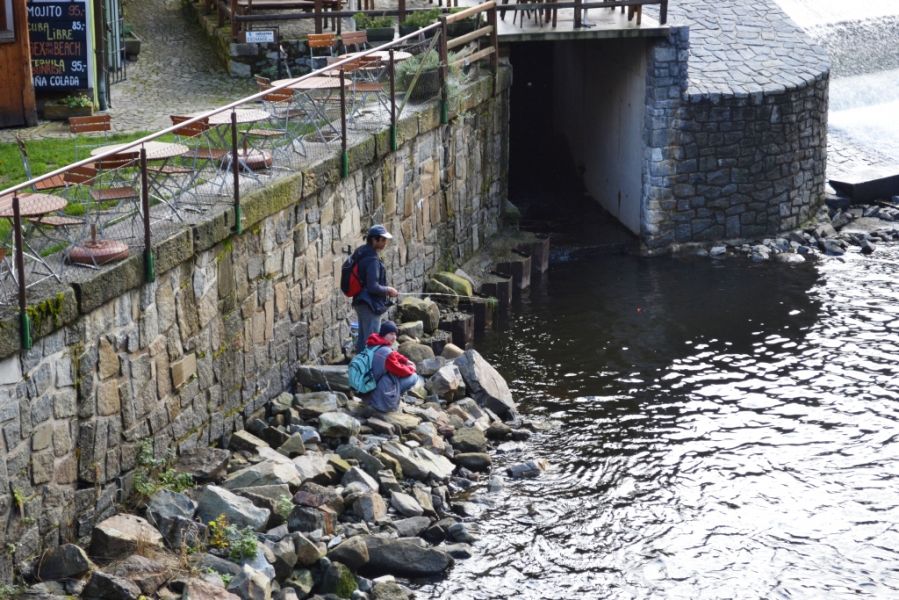 у искусственного порога которой, два рыболова пытались выловить рыбку. За 10 минут наблюдения у них ни разу не клюнуло.