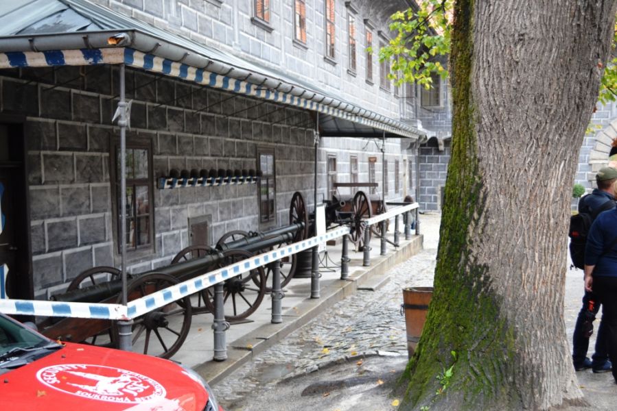 Вышли на площадь в нижней части замкового комплекса с фонтаном и экспозицией старинных орудий. Все время нашего шествия экскурсовод довольно интересно комментировал историю замка.