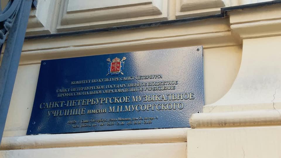 Изящное трехэтажное здание в стиле эклектики по адресу Моховая 36, построенное в начале XX века архитектором Бахом, принадлежало семье Строгановых. Революционные вихри и годы войны мало коснулись Моховой, ей посчастливилось сохранить свой первозданный облик до наших дней. С 1919 по 1924 года по адресу Моховая 36 располагалось знаменитое издательство "Всемирная литература", возглавляемое Максимом Горьким, история которого осталась уникальной страницей не только в культурной памяти Ленинграда , но всей нашей страны. Здесь работали Александр Блок, Корней Чуковский, Евгений Замятин, Николай Гумилев, Анна Ахматова, Михаил Лозинский. Здесь пил чай Герберт Уэллс. В 1947 году здание было передано Центральному музыкальному техникуму имени Мусоргского. Техникум был открыт в 1926 году и первыми его преподавателями стали столпы Петроградской консерватории Борис Асафьев, Юрий Тюлин и Петр Рязанов. Первоначально техникуму принадлежало здание на углу Моховой и Чайковского. В до и после военные годы здесь преподавали знаменитые дирижеры Евгений Мравинский и Илья Мусин, пианист Павел Серебряков. В этих стенах учились Георгий Свиридов, Василий Соловьев-Седой, Никита Богословский, Владимир Федосеев.