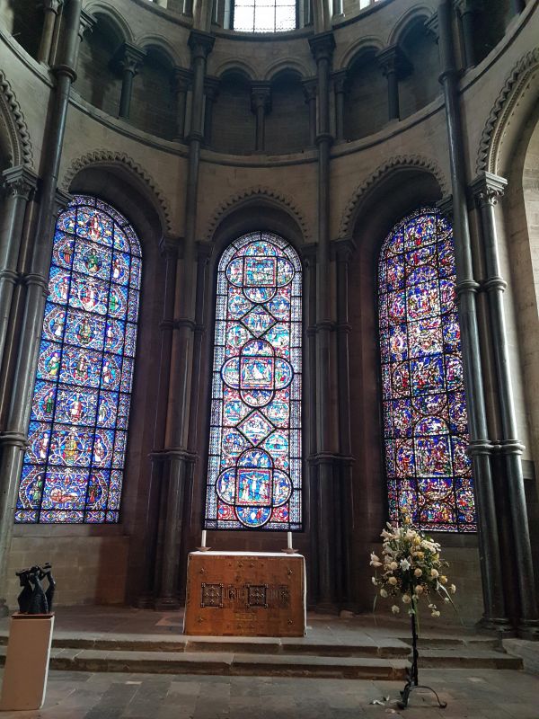 Начало строительства знаменитого Кентерберийского собора датируется 11 веком. Подобно многим грандиозным сооружениям Европы, свой окончательный облик он обрел несколько веков спустя.Английская монархия сумела кроваво начудить и здесь. В 1170 году по приказу короля Генриха II в соборе был убит архиепископ Томас Беккет. Место смерти непокорного архиепископа и сейчас огорожено от посторонних шагов. В центре крипта в память об убиенном горит свеча. Красочные витражи повествуют о жизни и смерти Томаса Беккета.