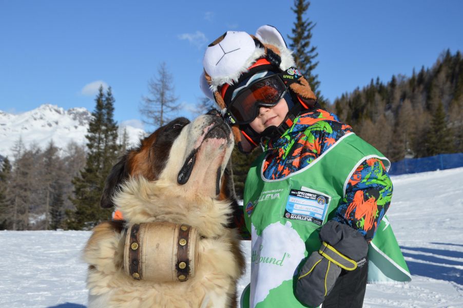 И еще.. здесь живет огромный сенбернар. Очень красивый и добрый. Все маленькие лыжники обожают с ним играть и фотографироваться...