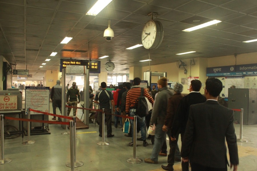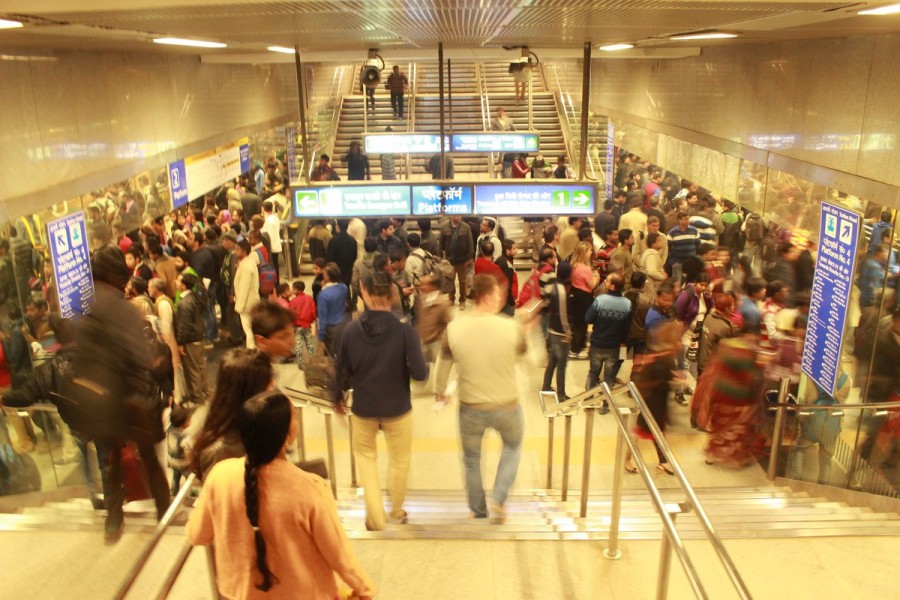 Решили переместиться в другую часть города на метро, чтобы посмотреть достопримечательности. Проезд рассчитывается по специальной таблице. От каждой стации до каждой цена своя. Мы больше 20 рупий по-моему ни разу не платили. Кстати, теперь пересчитывать рубли в рупии очень удобно, они сравнялись по стоимости, хотя 2 года назад рубль был почти в два раза выше. Это я к тому, что кризиса кроме как в России нигде нет. Даже в Индии.