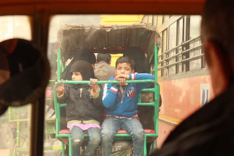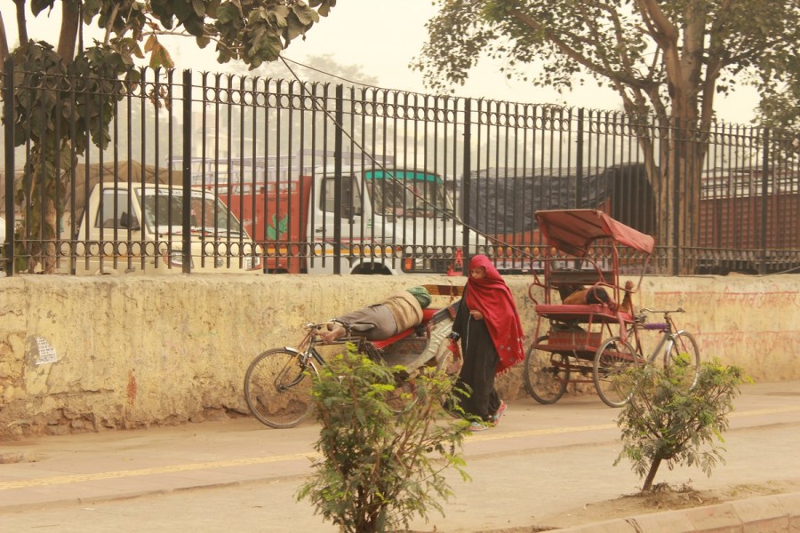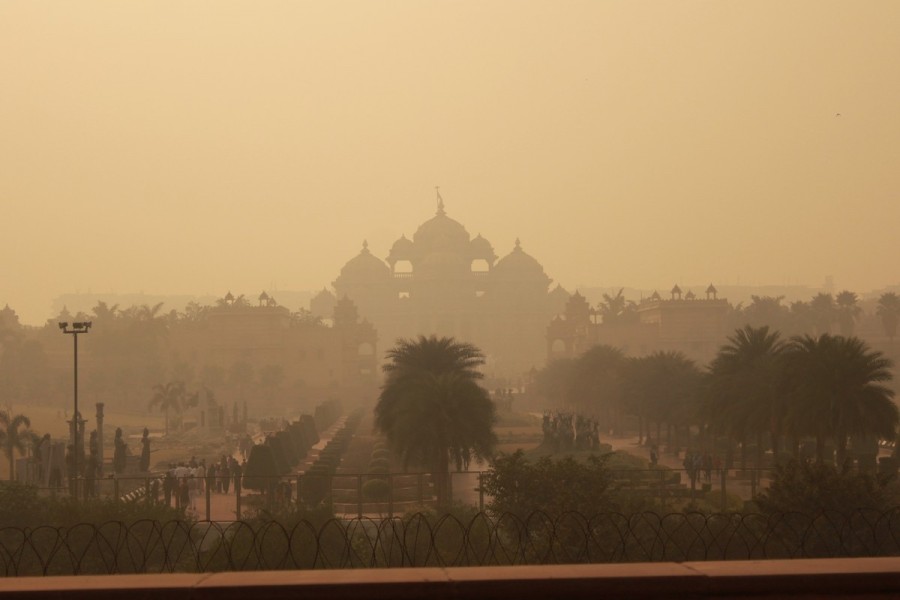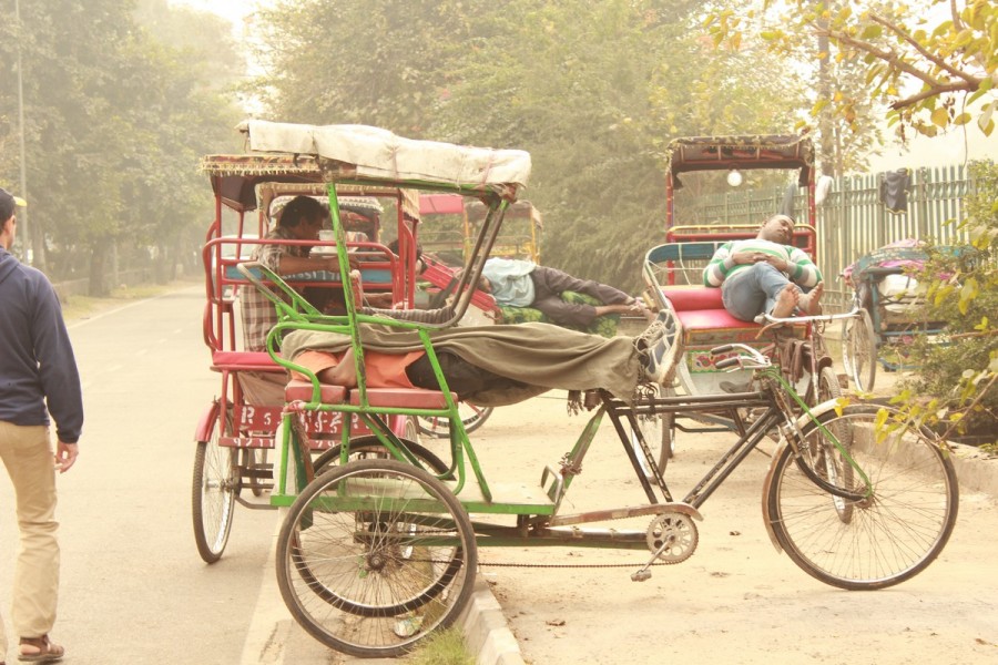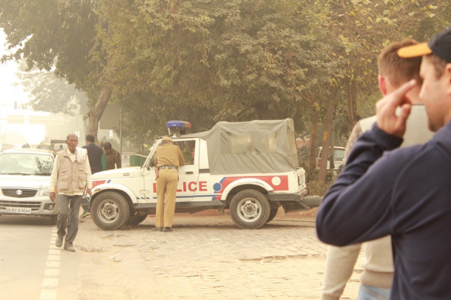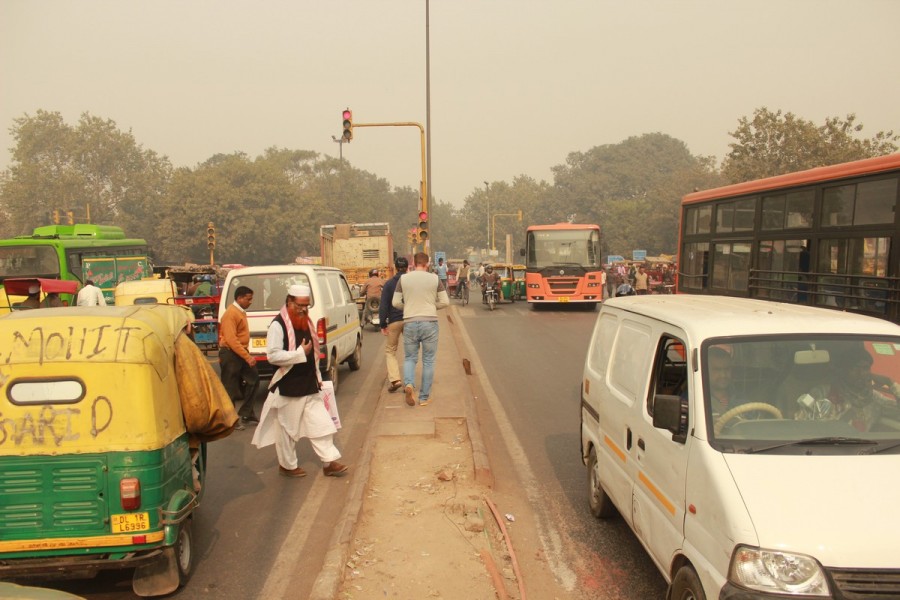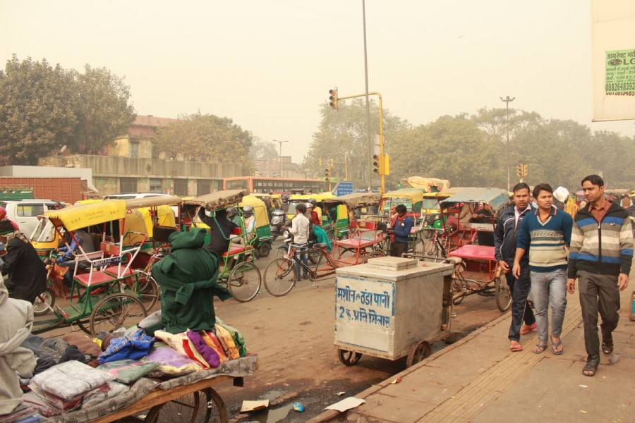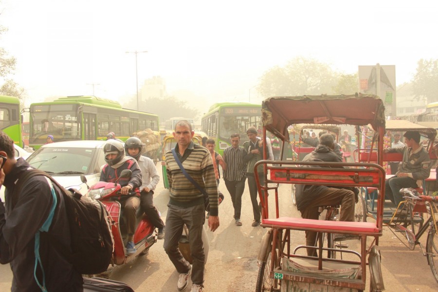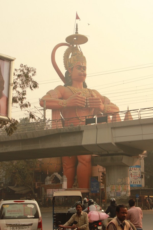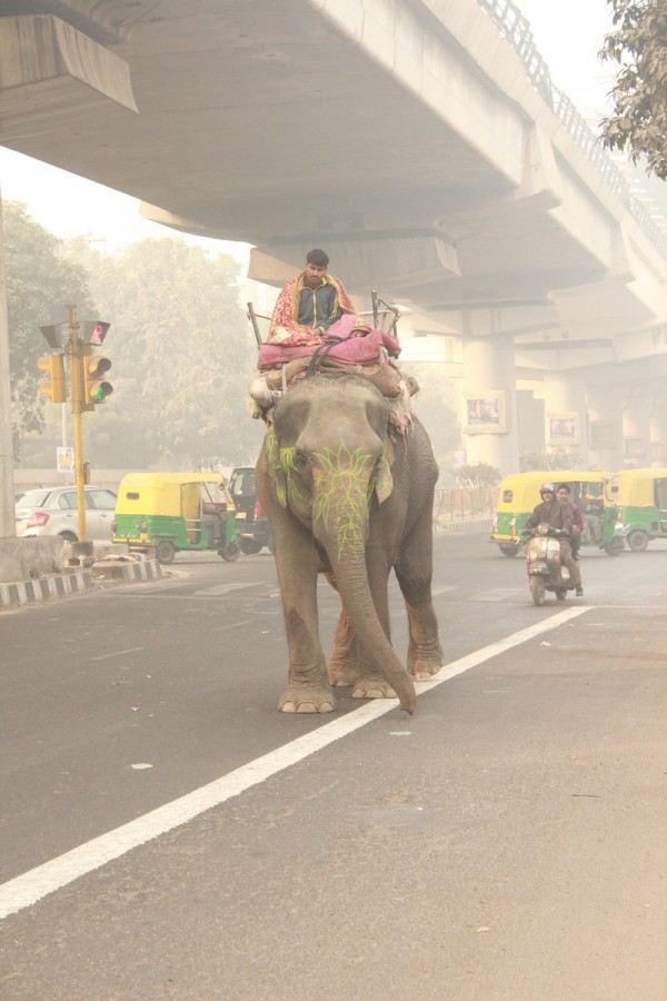 На следующий день пошли исследовать город. Вот слон на улице Дели. Не сказал, бы что это частое явление. Но мы увидели такое в первый же день и весьма удивились. Кстати, на следующих фотографиях видно, что все как будто в тумане. Мы сначала думали что это смог, и ужасались чем же они дышат. Но потом выяснилось, что это обычный туман и это является совершенно обычным делом после сезона дождей.