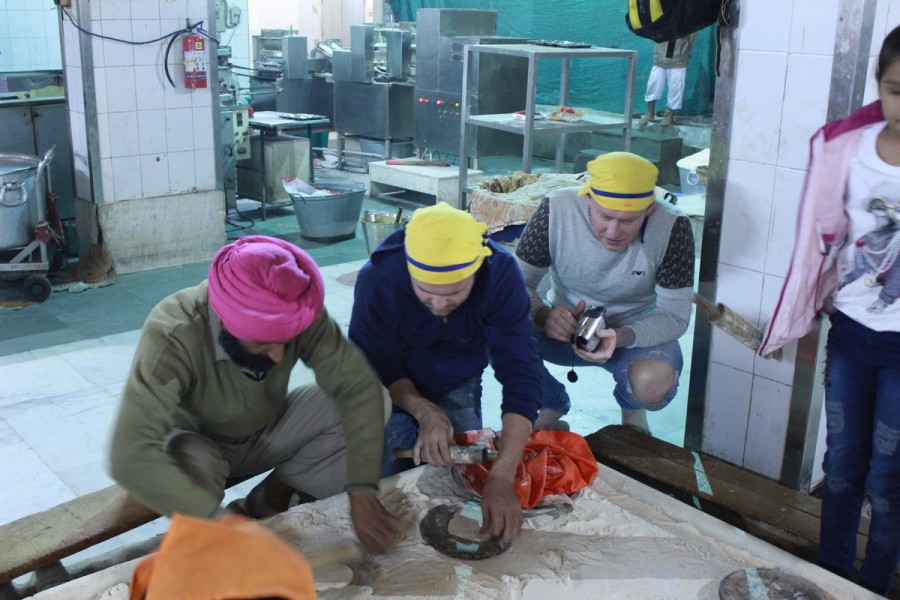 Интересно то что сикхи в стенах своего храма кормят всех, кто к ним заходит. Вы можете бесплатно поесть, а в качестве благодарности побыть волонтером на кухне. По словам Балджиндера каждый день там могут питаться несколько тысяч человек. За один заход несколько сотен точно. В общем, в городах, где есть гурдвары, если остался без денег, с голоду не помрешь.