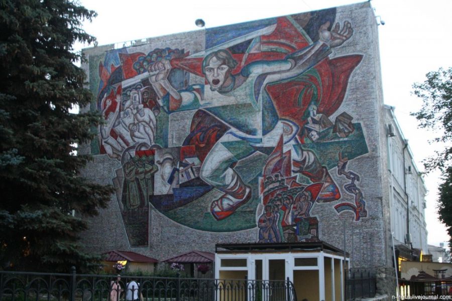 Вот такой интересный фасад с соцартом.