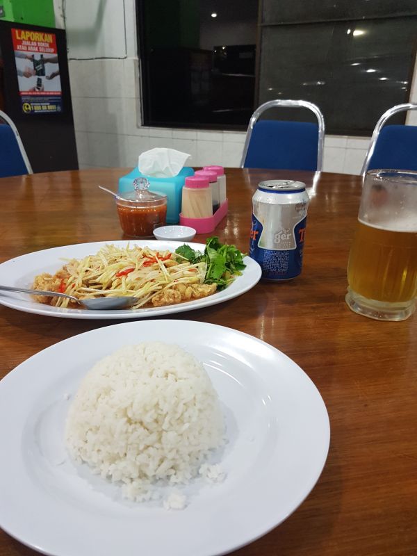 Местечко Mount Borneo, ну никак нельзя назвать рестораном с большой буквы «Р», судя по антуражу внутри, напоминающему советскую столовую в пионерском лагере. Однако меню оказалось достаточно длинным, а из холодильника мне подмигивал ледяной Тайгер, так что покушал я от пуза, и с большим удовольствием. Когда после трапезы оставил девушке 4 ринггита, она все никак не могла сообразить, что же это за деньги-то ей лишние сует иностранец, но потом в глазках появился огонек и она заулыбалась. Правда, на следующий вечер, она вновь не сразу сообразила, что ей чаевые оставляют! Наверное, до этого такое только в кино видела…))