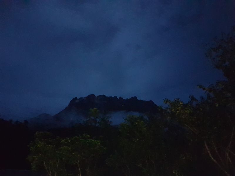 Посетителей в парке из-за скорого вечера и переменчивой погоды почти не было. Ботанический сад удалось найти не сразу, а только сделав круг по часовой стрелке от главного входа. Внимательно изучив карту, удалось идентифицировать место его расположения, но дошагав до нужной точки выяснилось, что сад работает до 16:00 – очередной калимантанский обломчик. В общем, из-за дурацкого проливня, день оказался проходным... или все же нет? Когда я добрел до отеля и вышел на балкончик, к своей радости обнаружил, что гора наконец-то открылась. В вечерних сумерках, когда небесная синева становится темнее с каждой минутой, Кинабалу выглядела невероятно мистической - удивительный пейзаж! Конечно, здорово повезло ее узреть, ведь ничто не предвещало такой возможности - погода весь день не благоволила. Похожая ситуация произошла со мной годом ранее в Дарджилинге. В последний день моего пребывания там, ранним утром, когда, запыхавшись, не жалея колесиков дорожной сумки я мчался по многоуровневым лабиринтам улиц на автостанцию, моему взору открылись вечные снега Каченджанги, невероятно контрастной на фоне яркого лазурного неба.