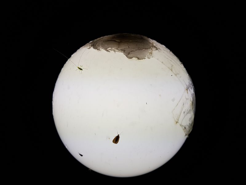 Едва спустилась ночь, вновь полило, как из ведра. Выйдя во двор, мое внимание привлекли всевозможные жучки, мотыльки и прочие насекомые, ютившиеся на круглых уличных фонарях. Отрешившись немного от происходящего, светильники представились мне планетами, а усатые и крылатые создания, ползающие по ярким сферам,- ужасающими гигантскими монстрами. Так они меня зачаровали, что в номер я вернулся уже насквозь мокрым...))