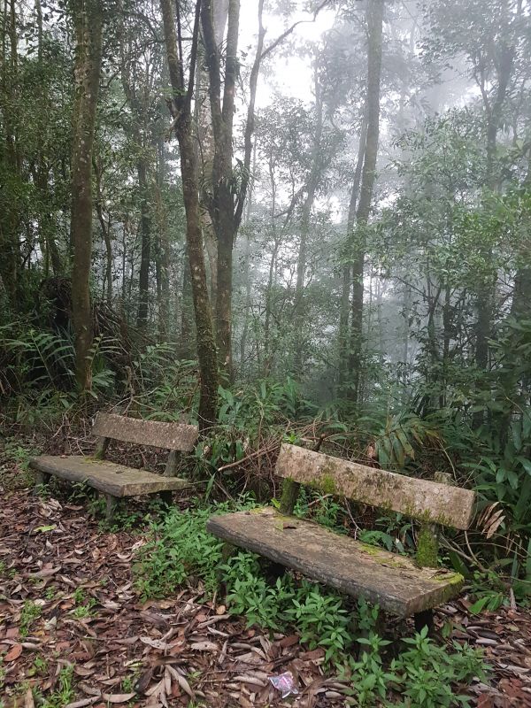 На смотровой площадке я пофоткал слегка приоткрывшуюся вершину Кинабалу, но долго ждать ее обнажения не мог, т.к. уже было больше 17:00, и пора было выдвигаться обратно. Что в одну, что в другую сторону, местные туристы махали мне из окон машин и здоровались, а на обратном пути даже останавливались, чтобы подвезти. Похоже, в этот день я был единственным европеоидом в парке!)) Вдоль дороги ютились беседки для отдыха, барбекюшницы, а также бетонные лавочки, которые благодаря своей замшелости прекрасно гармонировали с дикой природой вокруг.