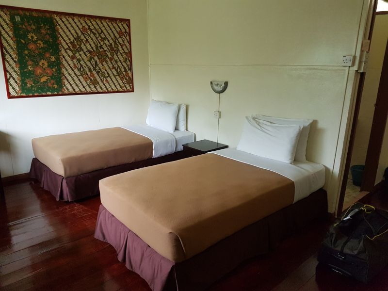 Минимализм убранства комнаты, конечно, запредельный за такую-то цену (310 ринггитов за 2 ночи), но, наверное, без этого оказалось бы сложнее проникнуться атмосферой девственной природы - с балкона открывался шикарный вид на национальный парк, а вдалеке угадывалась гора Кинабалу, плотно облепленная сгустками облаков.
