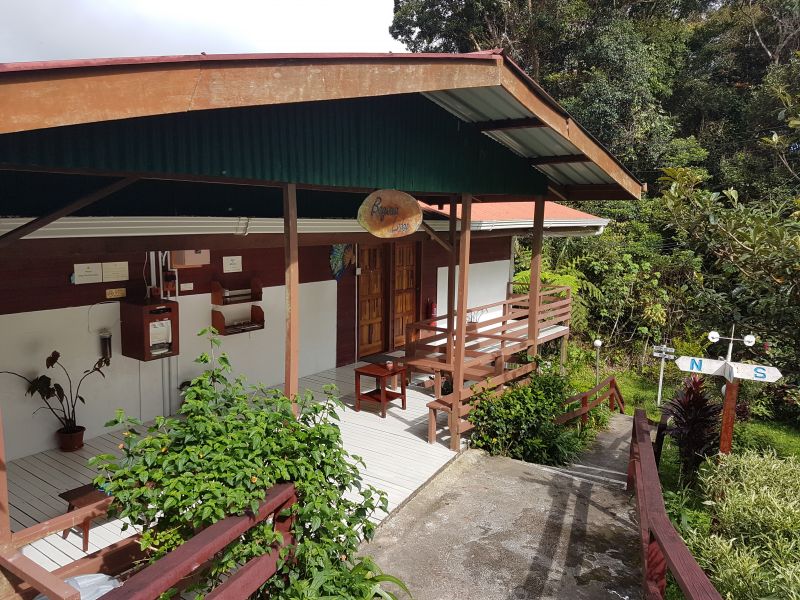 Все гостевые домики, в которых располагаются от 1 до 4 номеров, гармонично вписаны в милый, ухоженный садик, постепенно плавно сливающийся с джунглями. На террасах перед каждым входом установлены скамейки со столиками, есть вай-фай, автоматы с питьевой водой и смешные таблички, призывающие заносить обувь в дом, дабы ее не утащили моськи...)) Стоит упомянуть ресепшен – она расположена в таком миниатюрном здании, что в компании из 5-ти человек там уже будет тесно находиться, однако в этой же хибарке еще и сувениры продаются!
